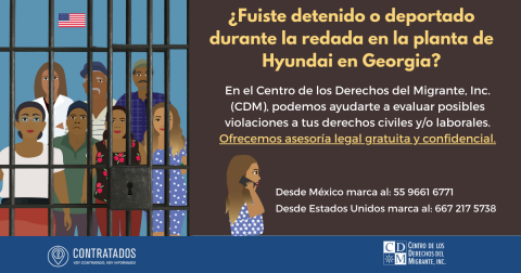 El equipo del CDM nos solidarizamos con las comunidades afectadas por las políticas migratorias implementadas en los Estados Unidos. Con el ánimo de sumar esfuerzos y dar respuesta a la lamentable redada masiva que ocurrió en la planta de Hyundai en Georgia, el pasado jueves 04 de septiembre, hemos estado colaborando con varias organizaciones locales a través de clínicas legales en Georgia, para evaluar y atender posibles violaciones a los derechos civiles de las personas trabajadoras detenidas.