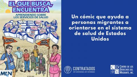 El que busca, encuentra: Aprendiendo sobre los servicios de salud es un nuevo recurso de la Red de Proveedores de Servicios de Salud para Migrantes (MCN, por sus siglas en inglés) para ayudar a las personas migrantes e inmigrantes a comprender mejor cómo funciona el sistema de salud en Estados Unidos. Este pequeño libro sigue a cinco personajes mientras recorren una feria comunitaria de salud y reciben información de Ana, una trabajadora de salud comunitaria, y Laura, una navegadora. El cómic está disponible en inglés y en español. Aquí tienes un vistazo a la información que encontrarás: